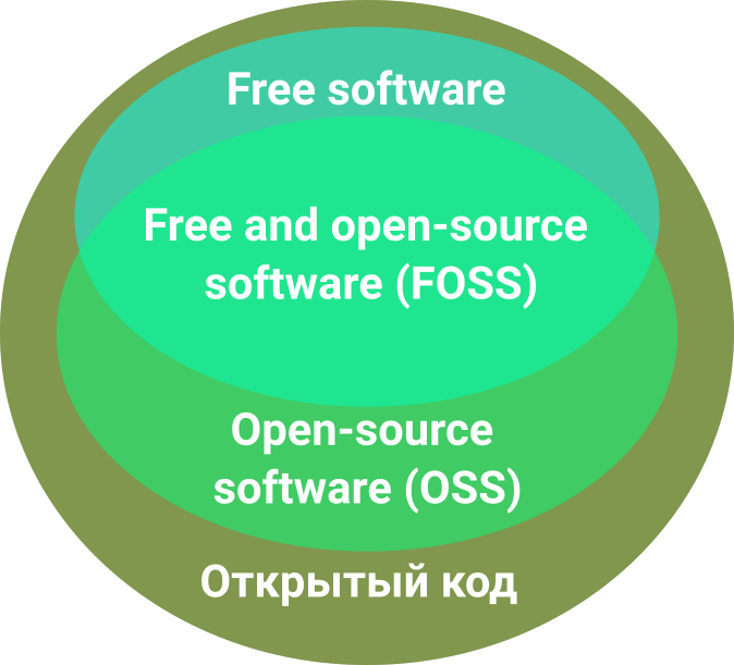 Это обобщающий термин, охватывающий свободное программное обеспечение и программное обеспечение с открытым исходным кодом. Права, гарантированные FOSS, вытекают из «Четырех основных свобод» определения свободного программного обеспечения и 10 критериев определения открытого исходного кода.
